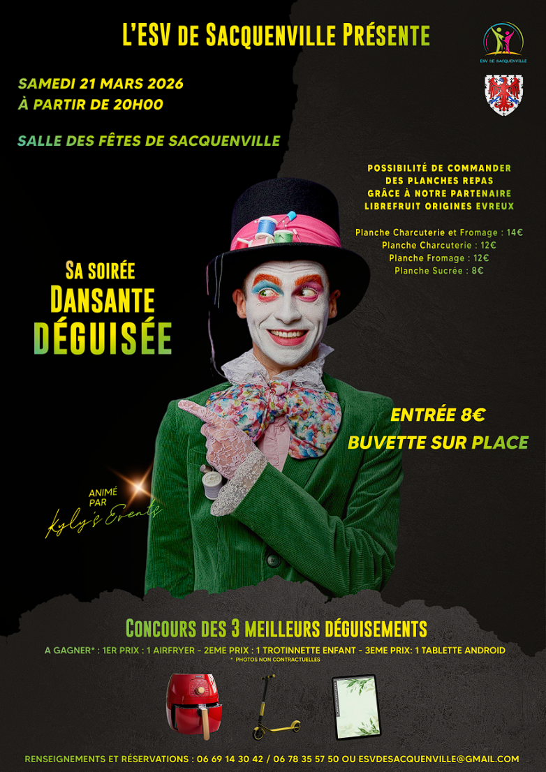 Affiche A3 réalisée dans le cadre d'un repas dansant organisé par l'Associaition ESV de Sacquenville (2023)