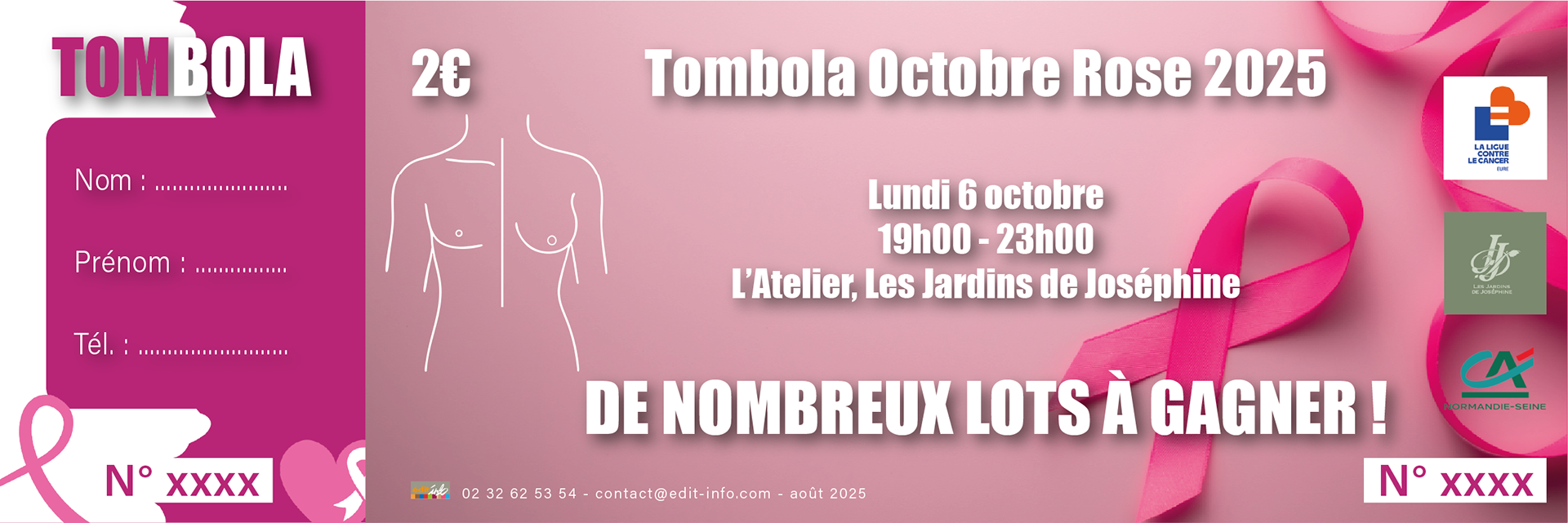 Maquette du ticket de tombola réalisée dans le cadre la soirée Octobre Rose 2025