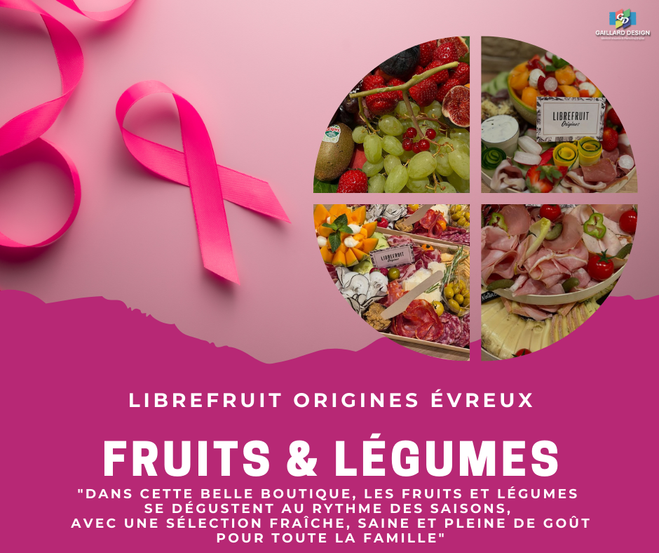 Affiche A3 réalisée pour une soirée que j'ai eu le plaisir de co-organiser dans le cadre de la Soirée Octobre Rose 2025 à l'Atelier Les Jardins de Joséphine le 6 octobre 2025 au profit de la Ligue contre le cancer Comité de l'Eure.