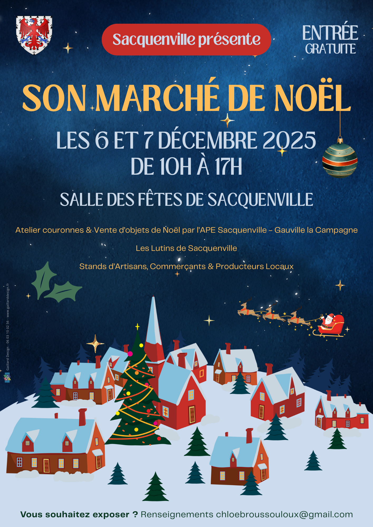 Affiche A3 réalisée dans le cadre de l'organisation du Marché de Noël de Sacquenville dans l'Eure (2025)